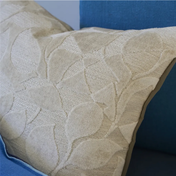 Smalne stier av blader slynger seg langs denne elegante puten i mellomstor størrelse, laget av fløyel. Vevd med viskose, bomull og lin, skapes en unik struktur i stoffet som står i kontrast til den luksuriøse fløyelsoverflaten.