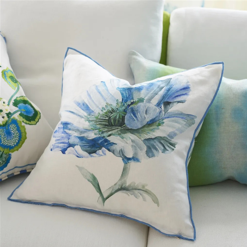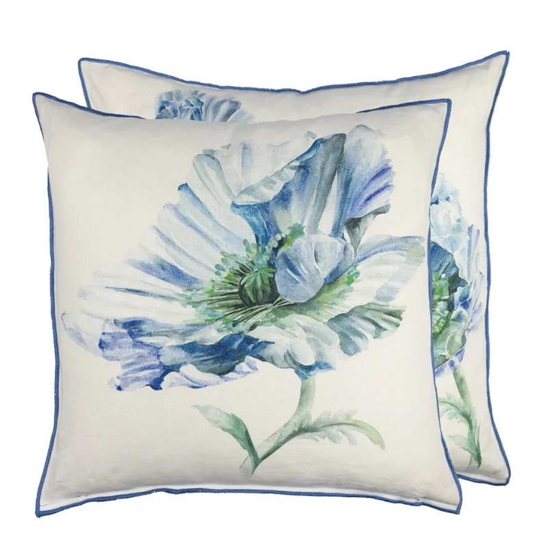 Denne vakre, vendbare puten er inspirert av Provences storslåtte valmueåkre. Med sitt håndmalte motiv i korallrosa er den like elegant som den er livlig, og det dristige formatet gir puten et moderne uttrykk. Motivet er digitaltrykket på ren, vasket lin, som gir tekstilet en myk og behagelig finish. Puten har moderne overlock-sømmer på alle fire sider.