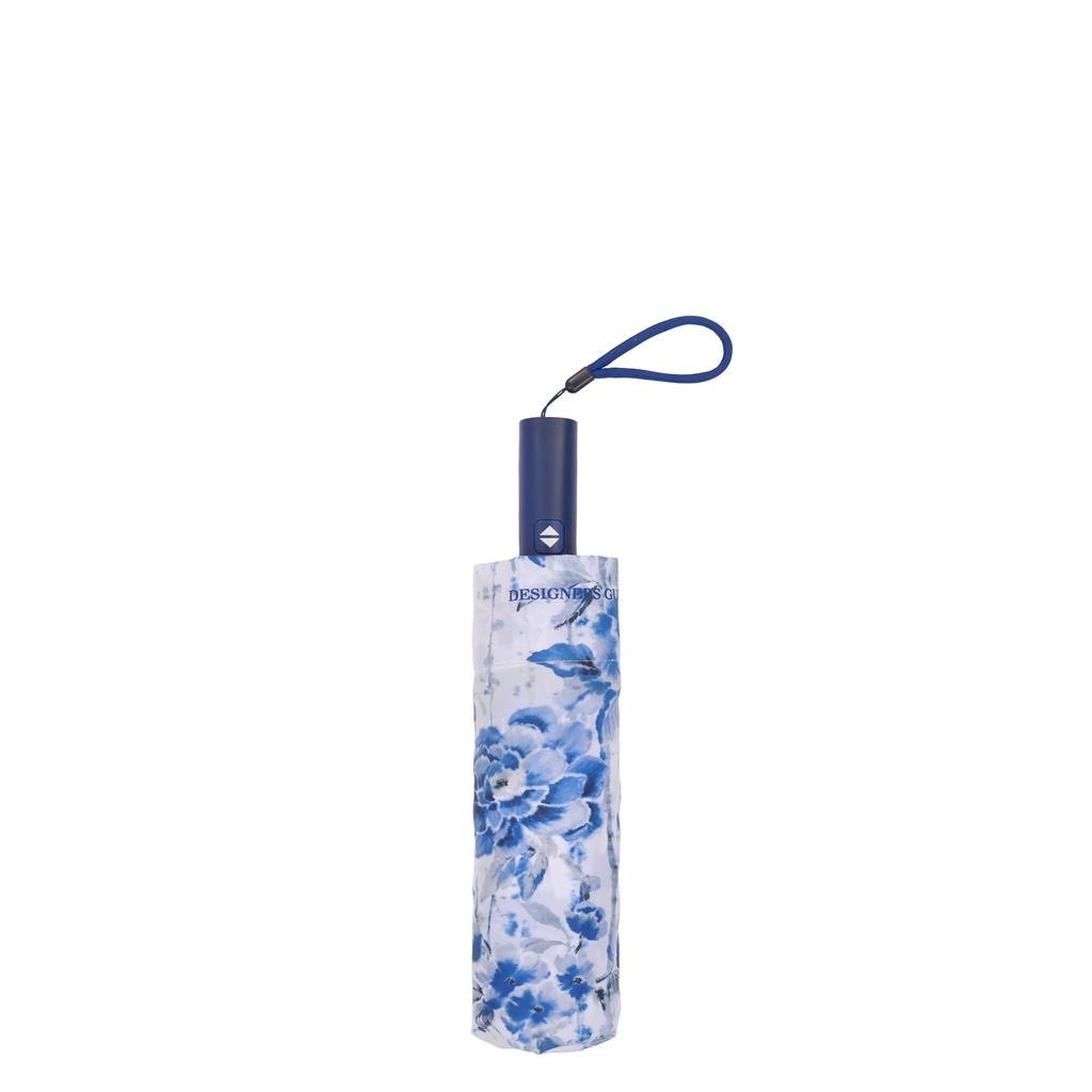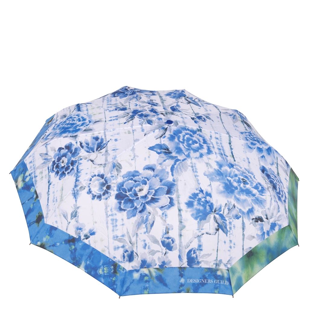 Kyoto Flower paraply fra Designers Guild. Stilig designparaply i kompakt form med et mosegrønt håndtak.
