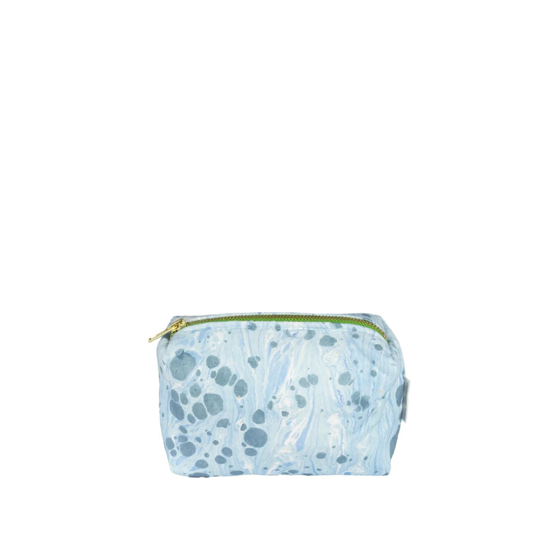 Denne moderne toalettmappen er inspirert av den flere hundre år gamle tradisjonen med marmorering, og kommer i vakre blåtoner. Motivet er digitaltrykket på 100 % bomull, og mappen har et praktisk vanntett fôr på innsiden.