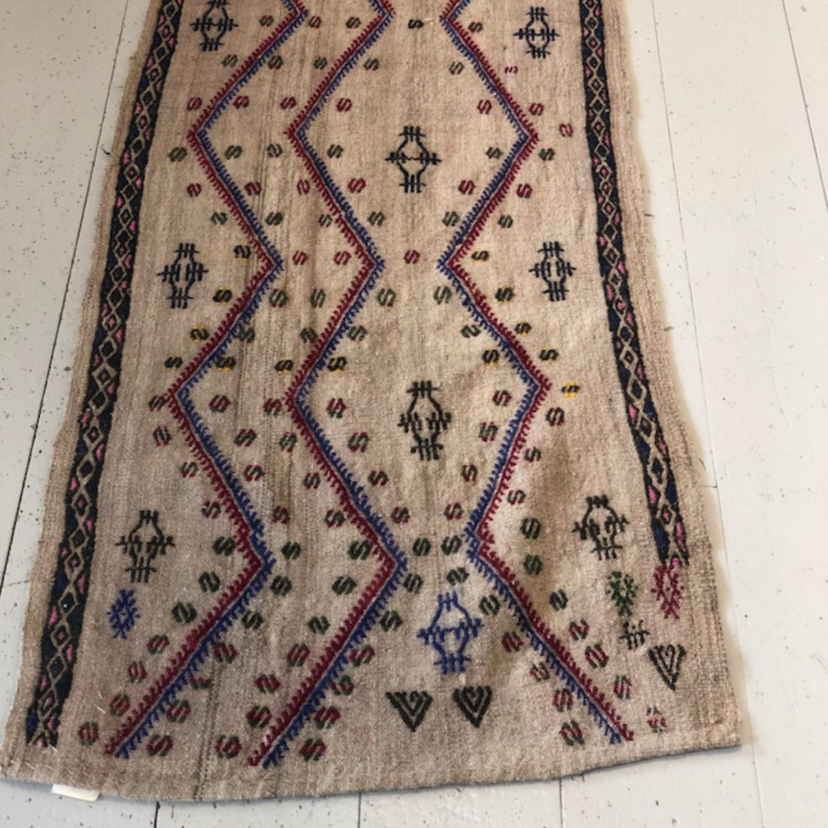 Bildet er et utsnitt av dette spesifikke, unike teppet. Kan sees hos oss i Heggelibakken 2. Ved kjøp i nettbutikken, må varen som et utgangspunkt hentes hos oss, men ta kontakt for et fraktestimat ved behov