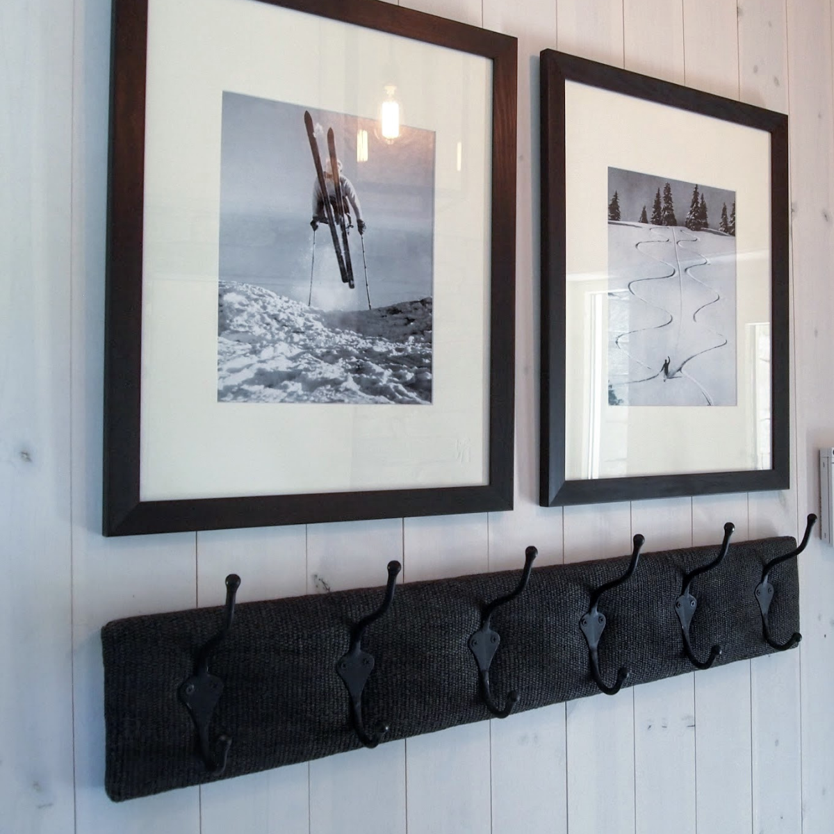 Knaggrekke fra Riis Interiørverksted, trukket i sort lin med sorte jernknagger