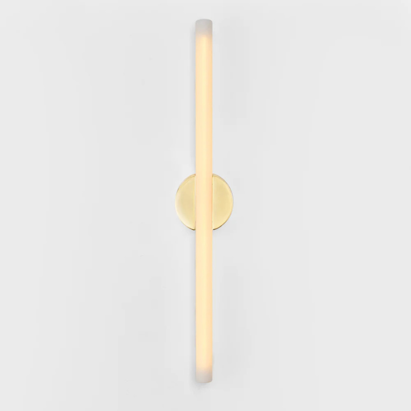Named in reference to the delicate confluence of the linear light source and central pivoting fixture, the light frosted finish subtly exposes and celebrates the internal filament when illuminated while maintaining the form of a typical S14d light source.