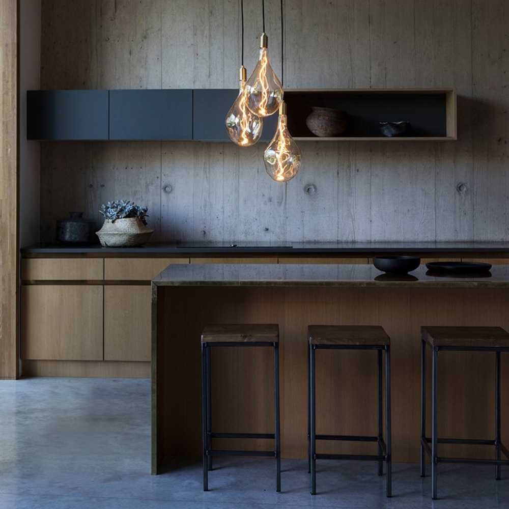Voronoii III lyspære fra Tala. Voronoi III er designet for å etterligne Fibonacci-sekvensen sett i kongler og bregner, og er kjent for sin karakteristiske spiral-LED-glødestruktur og munnblåste glass.