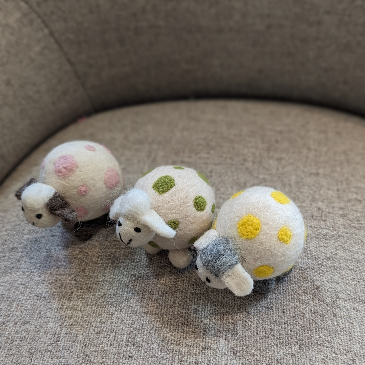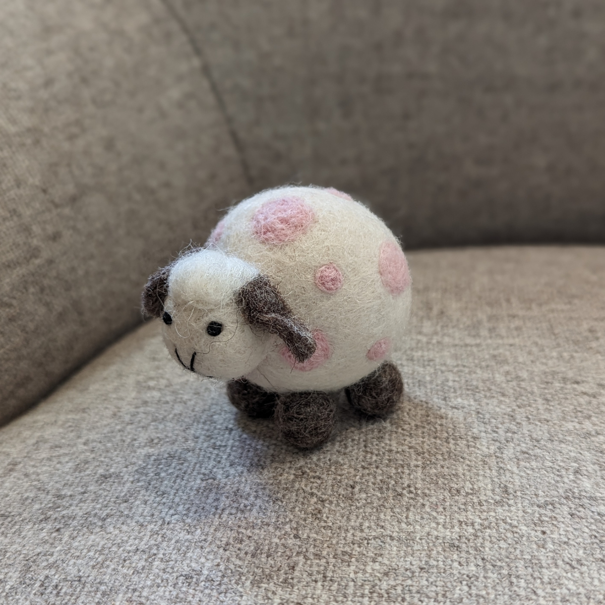 Et søtt, og prikkete lam laget av ullfilt fra norske Und.