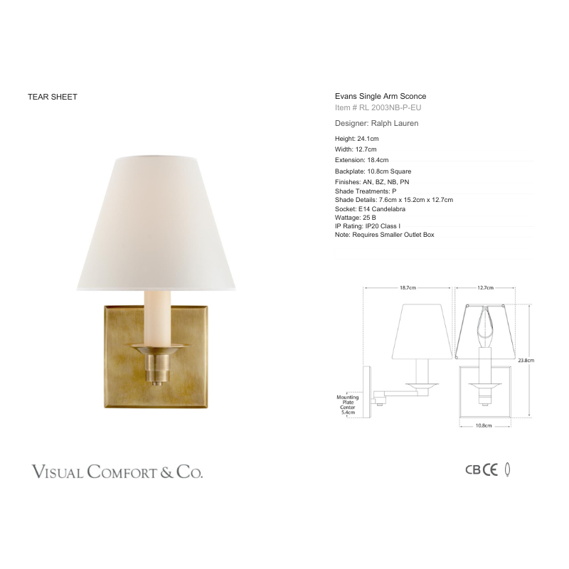 Evans Single Arm Sconce fra Ralph Lauren Home.