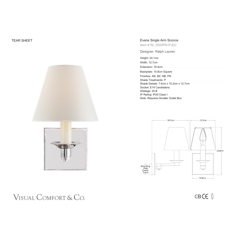 Evans Single Arm Sconce fra Ralph Lauren Home.