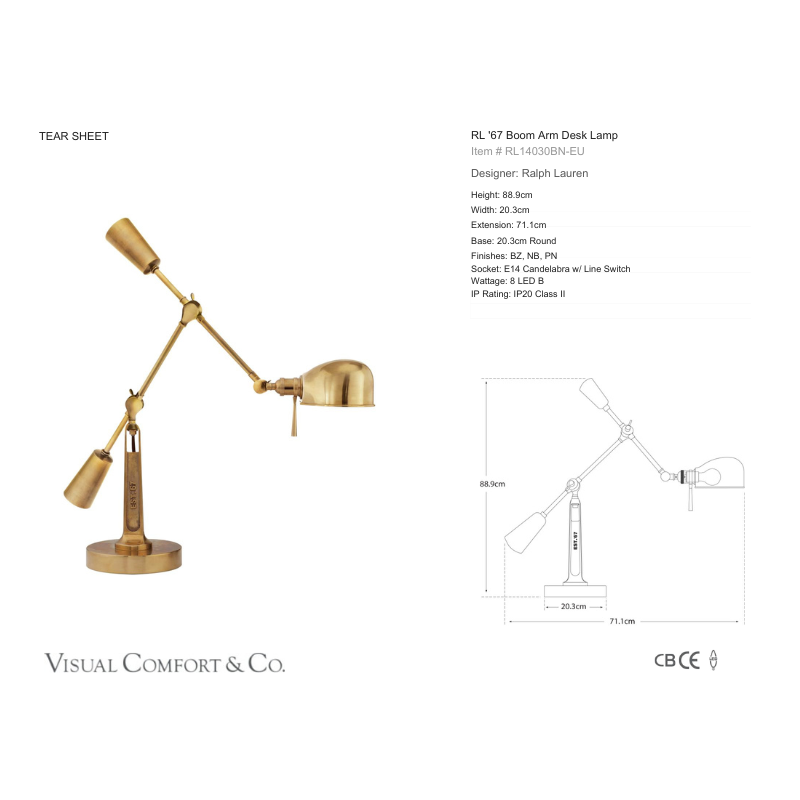RL ’67 Boom Arm bordlampe fra Visual Comfort for Ralph Lauren Home.