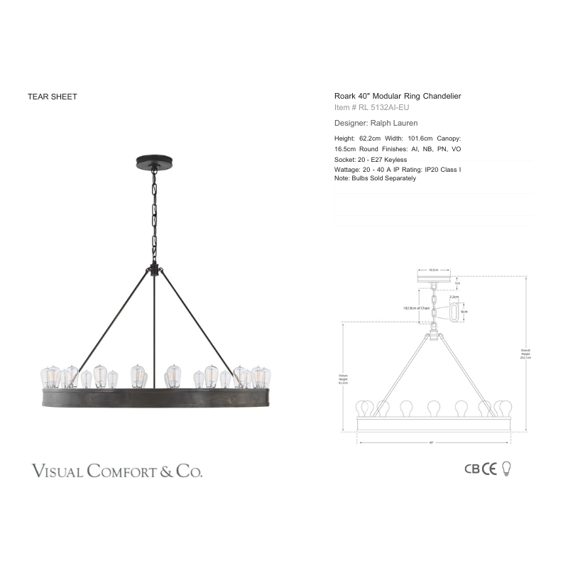 Roark 40? Modular Ring Chandelier / taklampe fra Visual Comfort for Ralph Lauren Home.